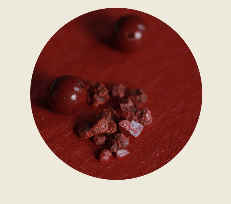 - This bracelet showcases the unique cinnabar purple gold sand, whose rich color and texture add a touch of luxury and mystery. The traditional Chinese elements incorporated in its design make it a statement piece that stands out.