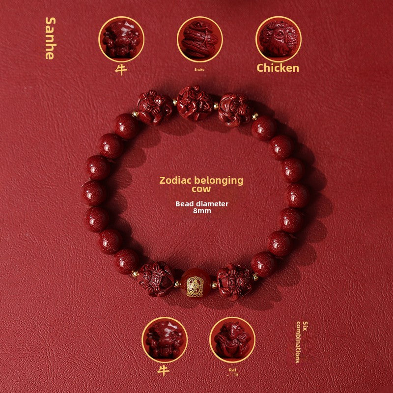 New Chinese style cinnabar purple gold sand bracelet zodiac men and women