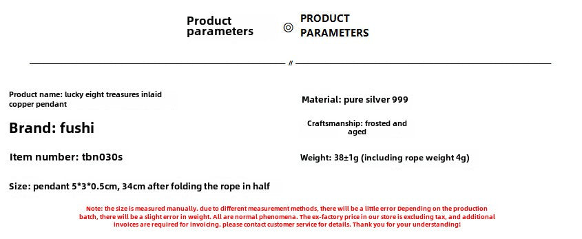 - Let the Auspicious Eight Treasures Sterling Silver Pendant Necklace bring good luck and positive energy into your life. Order yours today and experience the beauty and significance of this remarkable piece.